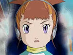 Ruki appears as an actual girl towards the end of the episode. She's standing under a bridge, listening to music when she sees a stream of Guilmon's DigiField realizing in the distance and disappears to explore it.