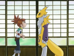 We find out more about Yamaki, Hypnos and his plan to erase all Digimon in this episode. Ruki and Renamon are only shown shortly, talking about the fight with Harpymon and what it means to evolve. Renamon tells Ruki that she came to the conclusion that Digimon with a human partner don't need to load data from other Digimon to gain stronger evolutions. She tells her that the purpose of evolution doesn't seem to be only to get stronger.