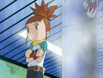 Takato is trying to help Growmon devolve. Nothing seems to help the process so he paints the Digimon with Jian's help to different shades of green to make him less visible in the park environment. Ruki comes and doesn't find the solution that amusing. She orders Renamon to show Takato that his plan was stupid.