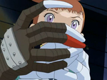Ruki encourages Renamon to fight the Champion level Gargomon. He's out of control to the point that he aims his machine guns to Ruki's face but Guilmon prevents the worst from happening. Ruki is terrified by the experience.
