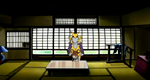 table with no chairs and an extra space for Renamon, who appearently likes to eat alone! There's the same scroll on the wall as in the living room but the view