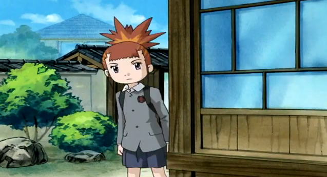you want to call it) is a room on the left side of the building. There's a house with a pink roof on the left side of Rika's house and you can see that house behind the Tamers'