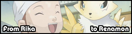 I'm sure that, now ... I can become much more honest with myself. I think I'll be able to speak honestly with you about my feelings. In the confusion when we parted ... it was only intuitive to me, but there was one thing that I understood then ... that we can't be separated from each other like this. That's why ... I couldn't say goodbye to you, Renamon. I couldn't smile and say that we'd meet again.